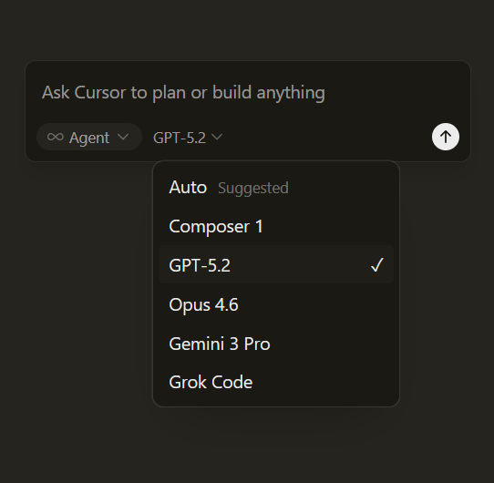 Choose between every cutting-edge model from OpenAI, Anthropic, Gemini, xAI, and Cursor.